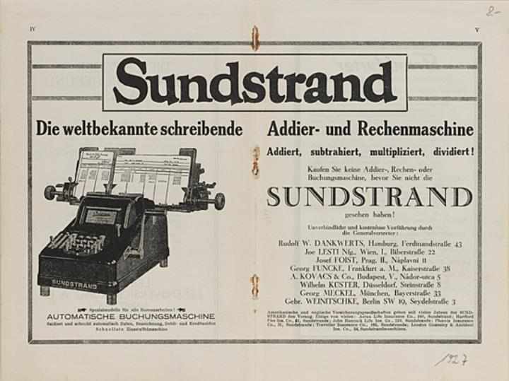 Sundstrand Die weltbekannte schreibende Addier- und Rechenmaschine