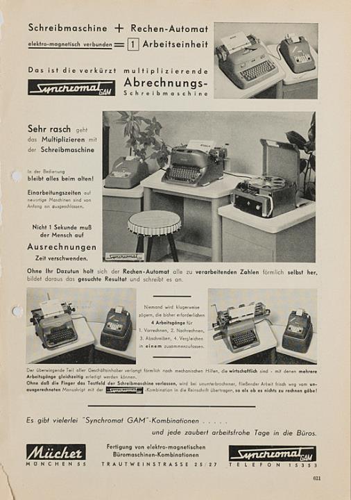 Schreibmaschine + Rechen-Automat Synchromat GAM