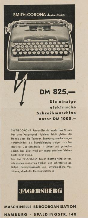 Werbeanzeige für Schreibmaschine Smith-Corona Electric monochrom