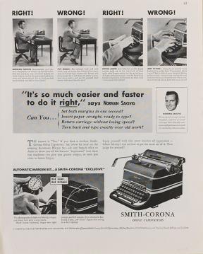 Werbeanzeige für Schreibmaschine und Schreibmaschinenkurs Smith-Corona monochrom