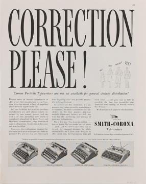 Werbeanzeige für Schreibmaschine Smith-Corona monochrom