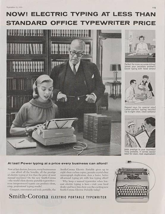 Werbeanzeige für Schreibmaschine Smith-Corona Electric monochrom