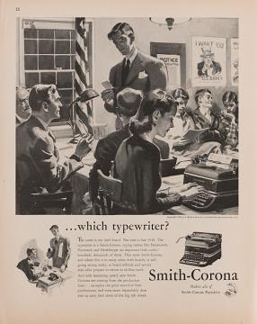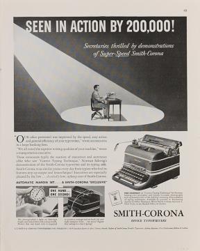 Werbeanzeige für Schreibmaschine Smith-Corona polychrom