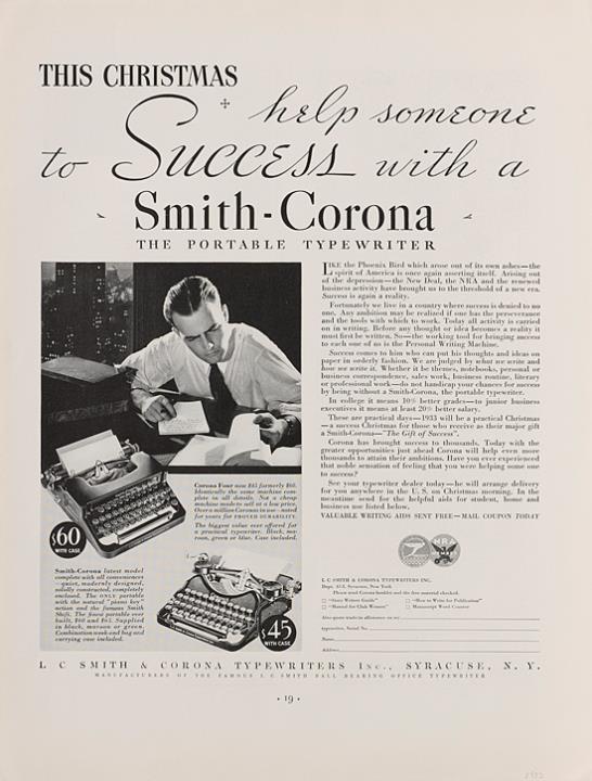 Werbeanzeige für Schreibmaschine Smith-Corona monochrom