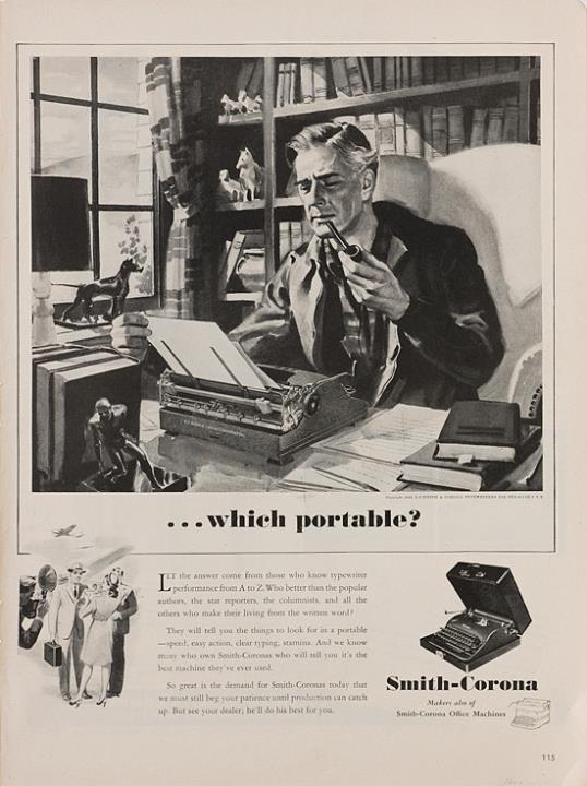 Werbeanzeige für Schreibmaschine Smith-Corona Portable monochrom
