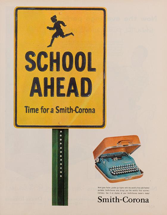 Werbeanzeige für Schreibmaschine Smith-Corona Portable polychrom, zwei Exemplare