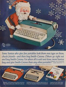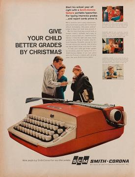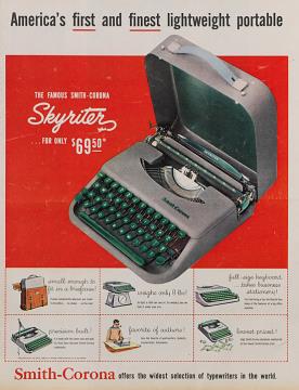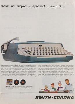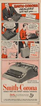 Werbeanzeige für tragbare Schreibmaschinen Smith-Corona polychrom