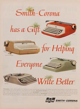 Werbeanzeige für Schreibmaschine Smith-Corona polychrom