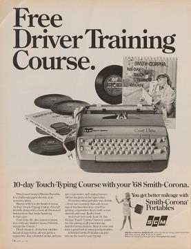Werbeanzeige für Schreibmaschinenkurs und Schreibmaschine Smith-Corona Coronet Electric monochrom