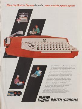 Werbeanzeige für Schreibmaschine Smith-Corona Galaxie polychrom