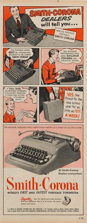 Werbeanzeige für Schreibmaschine Smith-Corona Portable polychrom
