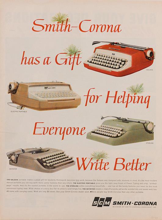 Werbeanzeige für tragbare Schreibmaschinen Smith-Corona polychrom, zwei Exemplare
