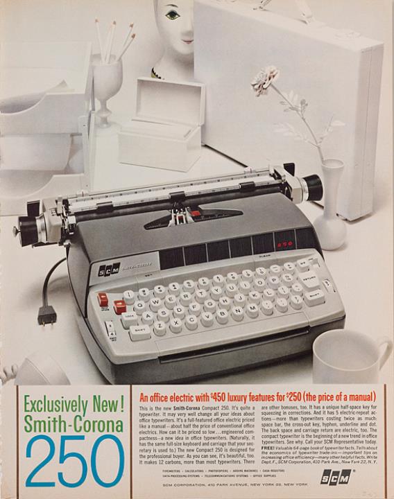 Werbeanzeige für Schreibmaschine Smith-Corona 250 polychrom