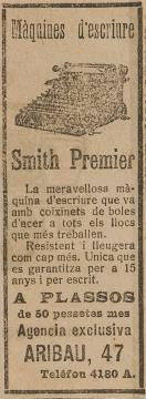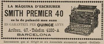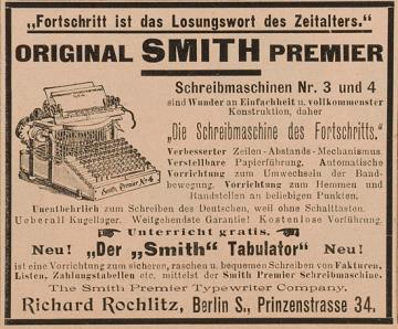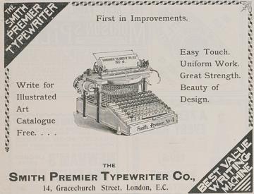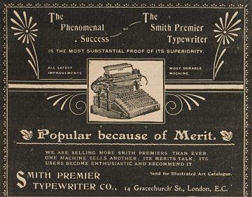 Werbeanzeige für Schreibmaschine Smith Premier 4 monochrom