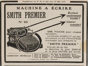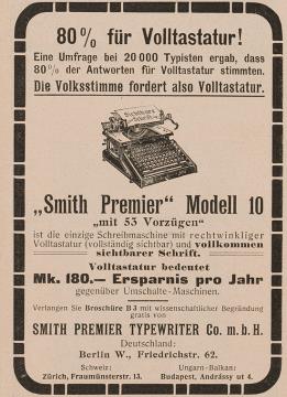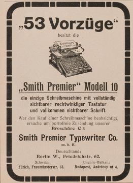 Werbeanzeige für Schreibmaschine Smith Premier 10 monochrom