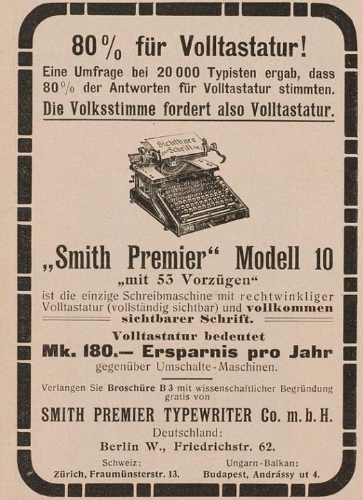 Next to literature on the history of technology, of the typewriter and the office, the Archive holds patent letters, textbooks and instruction manuals as well as historical postcards, letters, photographs and various kinds of advertising (leaflets and brochures, advertising stamps, newspaper ads, posters and signs, promotional gifts).