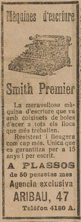 Werbeanzeige für Schreibmaschine Smith Premier monochrom