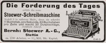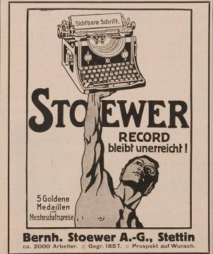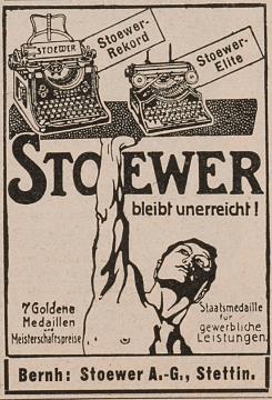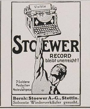 Werbeanzeige für Schreibmaschine Stoewer 4 monochrom