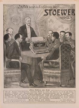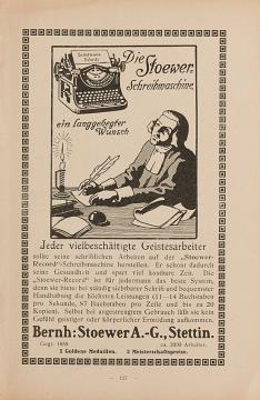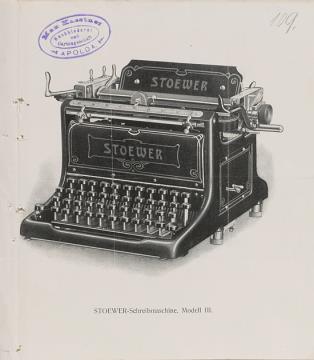 Werbeanzeige für Schreibmaschine Stoewer; auf Papier geklebt monochrom