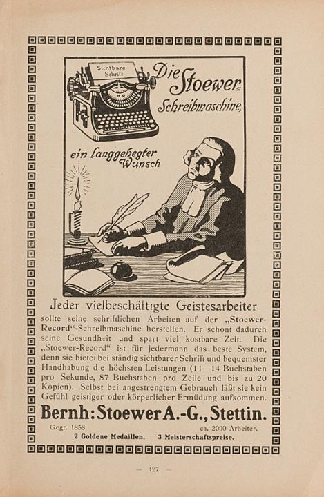 Werbeanzeige für Schreibmaschine Stoewer monochrom