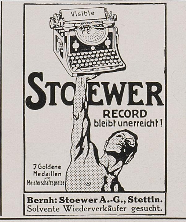 Zeitungsblatt (Illustrirte Zeitung) mit Werbeanzeige für Schreibmaschine Stoewer Record monochrom
