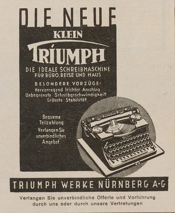 Zeitungsblatt (Fliegende Blätter) mit Werbeanzeige für Schreibmaschine Triumph monochrom