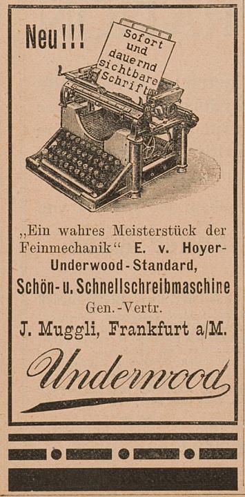 Zeitungsblatt (Fliegende Blätter) mit Werbeanzeige für Schreibmaschine Underwood monochrom