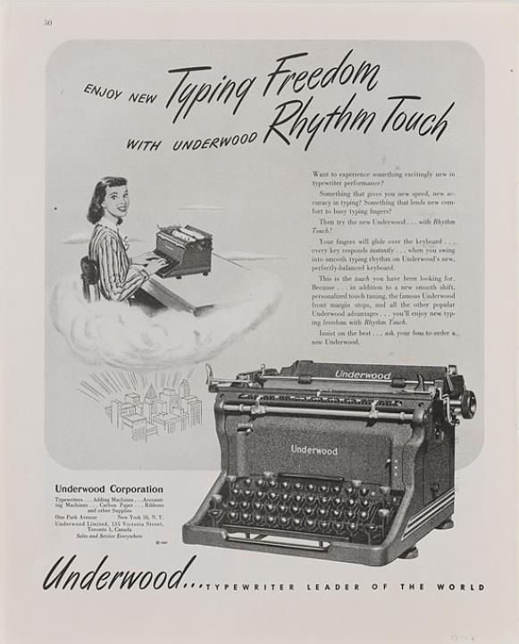 Werbeanzeige für Schreibmaschine Underwood monochrom