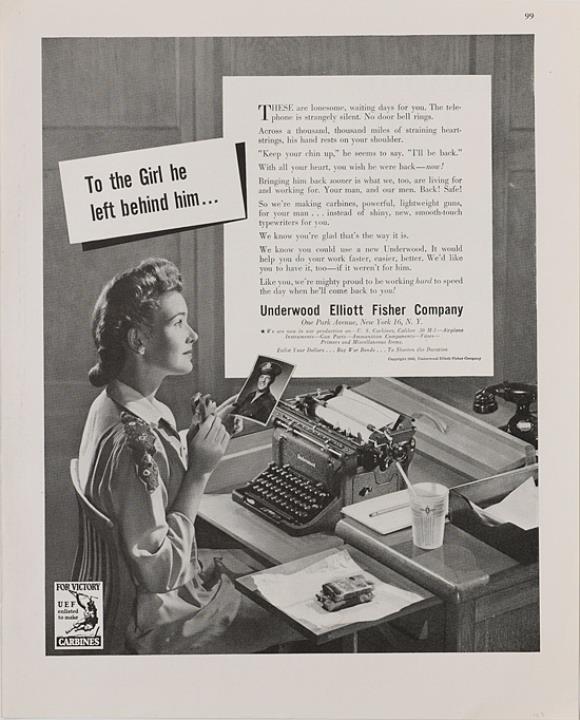 Werbeanzeige für Schreibmaschine Underwood monochrom