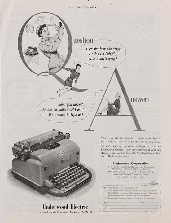 Werbeanzeige für Schreibmaschine Underwood Electric monochrom