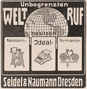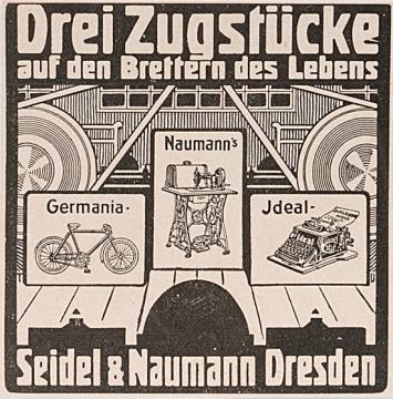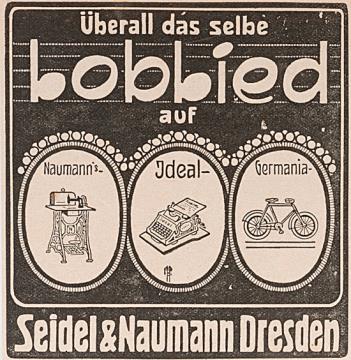 Werbeanzeige des Schreibmaschinenherstellers Seidel & Naumann monochrom