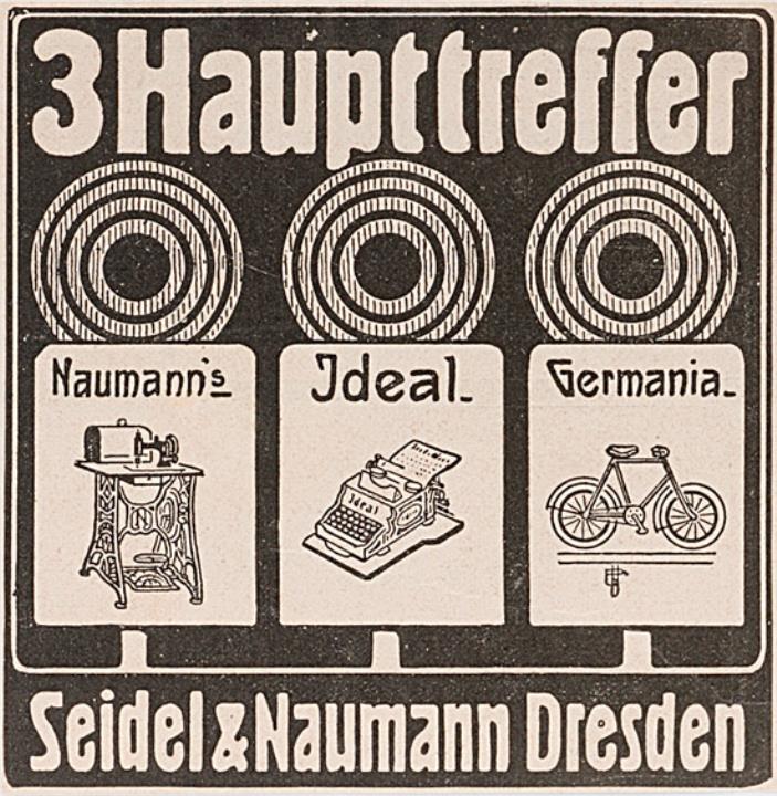 Werbeanzeige des Schreibmaschinenherstellers Seidel & Naumann monochrom