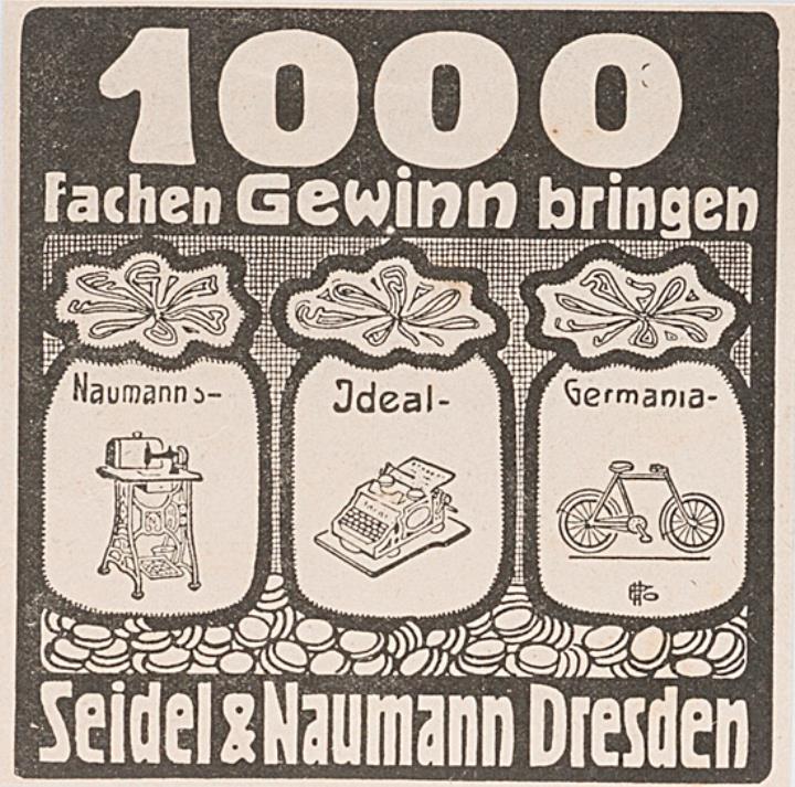 Werbeanzeige des Schreibmaschinenherstellers Seidel & Naumann monochrom
