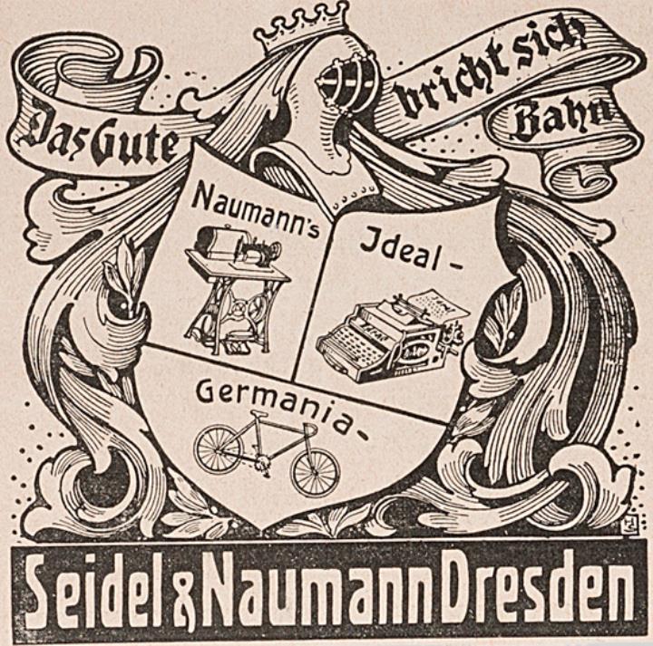 Werbeanzeige des Schreibmaschinenherstellers Seidel & Naumann monochrom, Grafik: HS