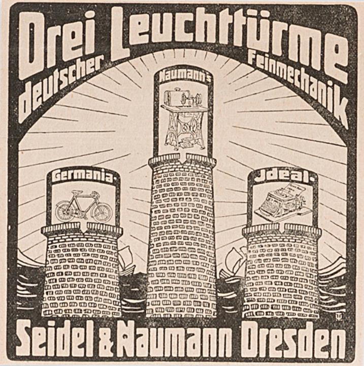 Werbeanzeige des Schreibmaschinenherstellers Seidel & Naumann monochrom, Grafik: TU(?)
