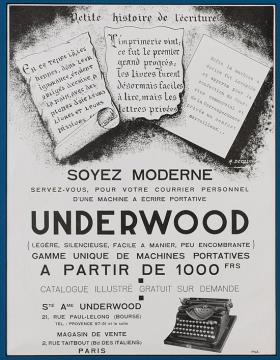 Werbeanzeige für Schreibmaschine Underwood Portable monochrom; mit Passepartout