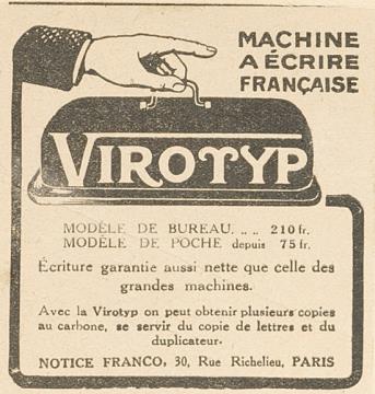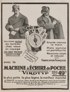 Werbeanzeige für Schreibmaschine Virotyp; auf Karton geklebt monochrom