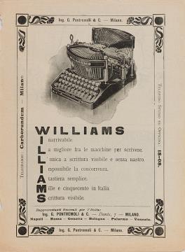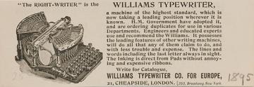 Werbeanzeige für Schreibmaschine Williams monochrom