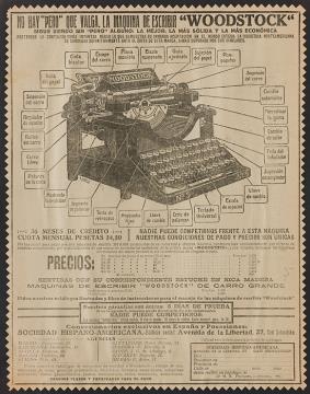 Werbeanzeige für Schreibmaschine Woodstock; auf Karton geklebt monochrom
