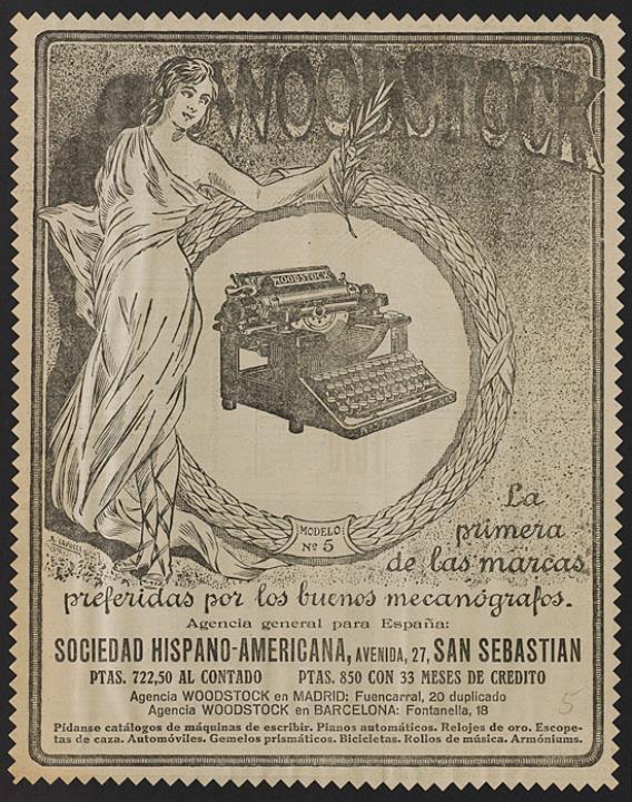 Werbeanzeige für Schreibmaschine Woodstock; auf Karton geklebt monochrom