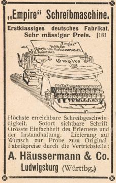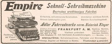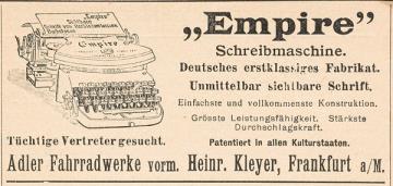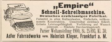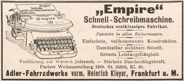 Werbeanzeige für Schreibmaschine Adler Empire monochrom