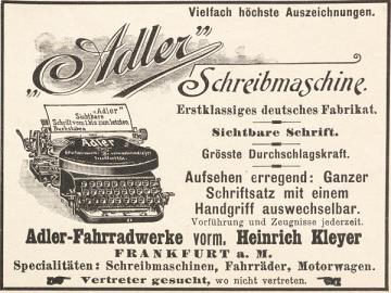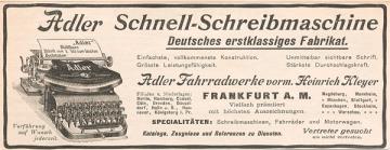 Werbeanzeige für Schreibmaschine Adler monochrom