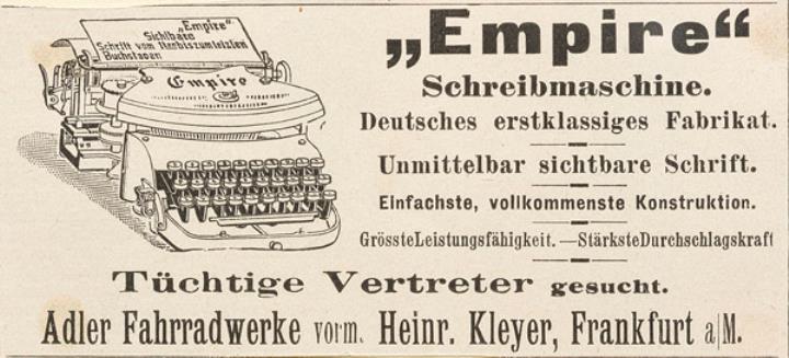 Werbeanzeige für Schreibmaschine Adler Empire monochrom