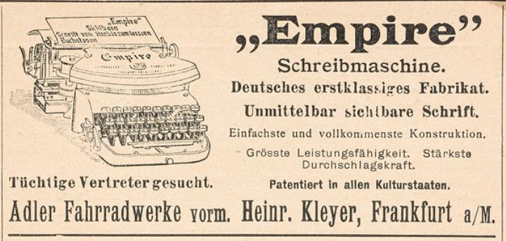 Werbeanzeige für Schreibmaschine Adler Empire monochrom, zwei Exemplare