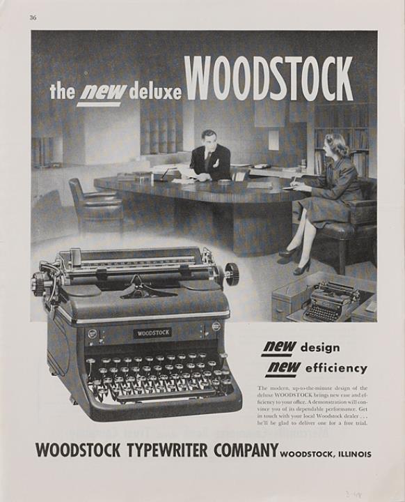Werbeanzeige für Schreibmaschine Woodstock monochrom