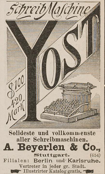 Zeitungsblatt (Illustrirte Zeitung) mit Werbeanzeige für Schreibmaschine Yost monochrom, drei Exemplare