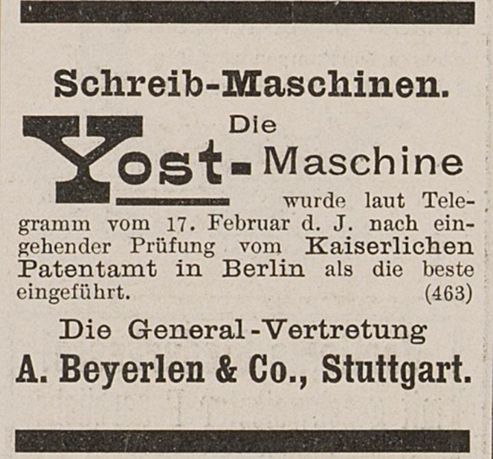 Zeitungsblatt (Illustrirte Zeitung) mit Werbeanzeige für Schreibmaschine Yost monochrom