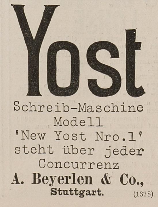 Yost Schreib-Maschine Modell New Yost Nro. 1