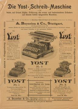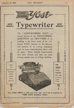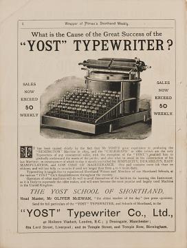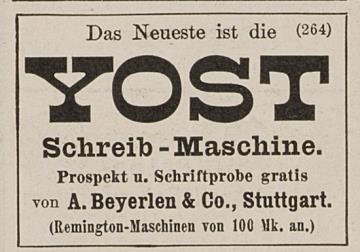 Werbeanzeige für Schreibmaschine Yost monochrom