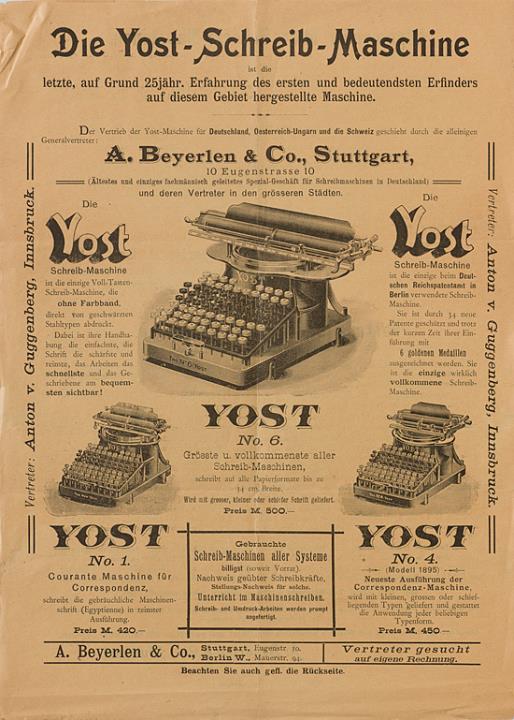 Prospekt für Schreibmaschine New Yost, Yost 4 und 6 monochrom